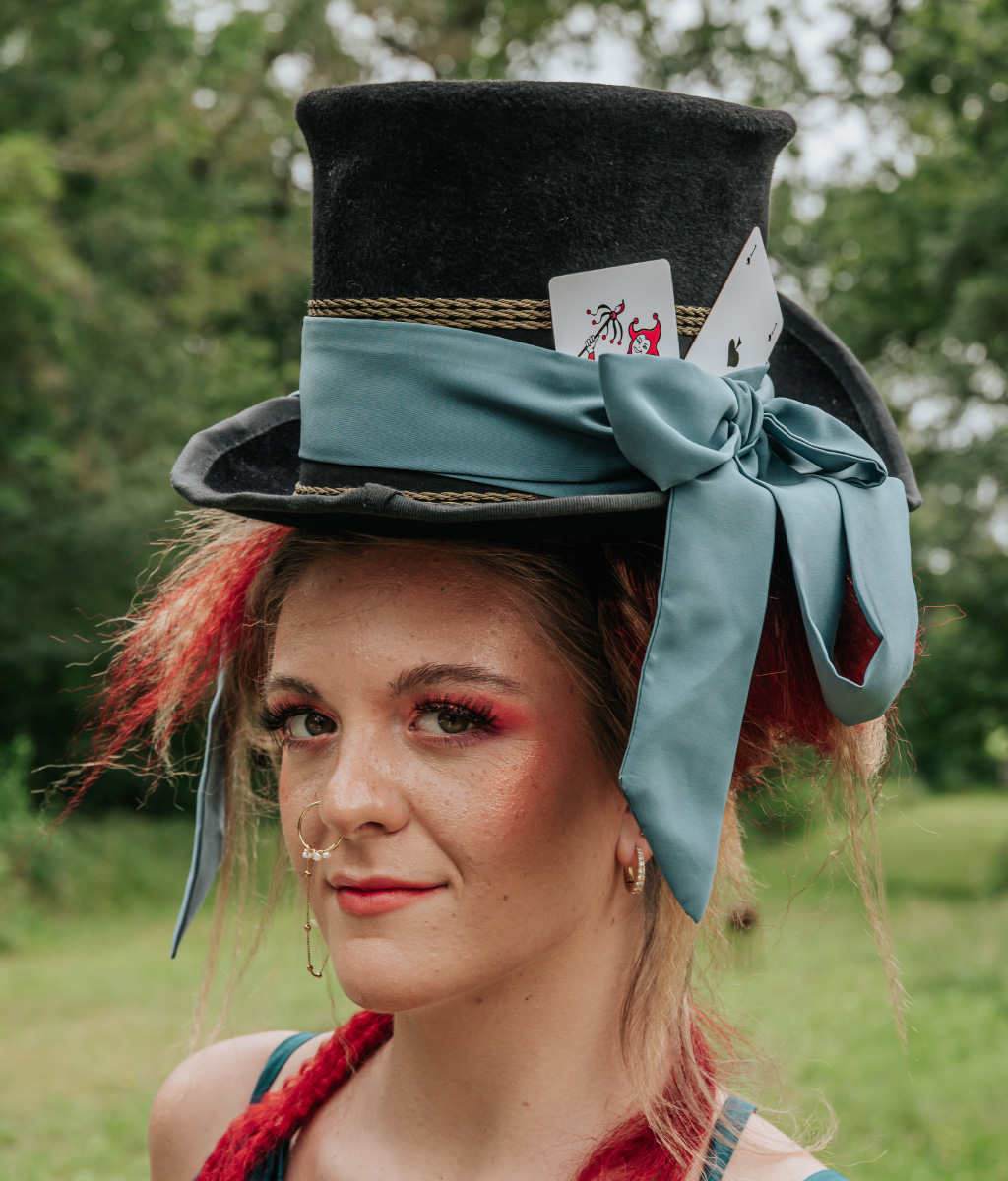 Chapeau haut de forme fille, en toile gommée et tissu coupé cousu